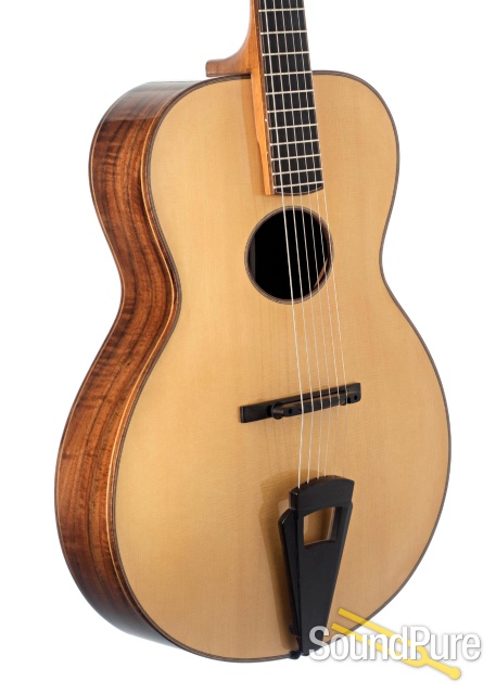 From In-House Master Luthier, Rob Sharer: One of the most successful oval-hole archtops I've ever heard, acoustically speaking. Exemplary fret work, elegant deep dish carving, a perfect straight neck, and the rubenesque roundness of the lower bout is a thing of beauty. Learned guitar building with no unnecessary frills; just enough bling and sparkle to let you know you're holding something truly special while retaining classic good looks.