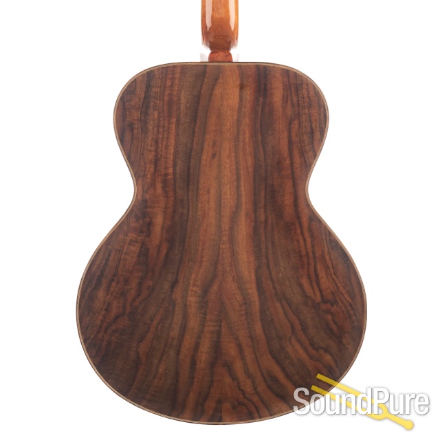 From In-House Master Luthier, Rob Sharer: One of the most successful oval-hole archtops I've ever heard, acoustically speaking. Exemplary fret work, elegant deep dish carving, a perfect straight neck, and the rubenesque roundness of the lower bout is a thing of beauty. Learned guitar building with no unnecessary frills; just enough bling and sparkle to let you know you're holding something truly special while retaining classic good looks.