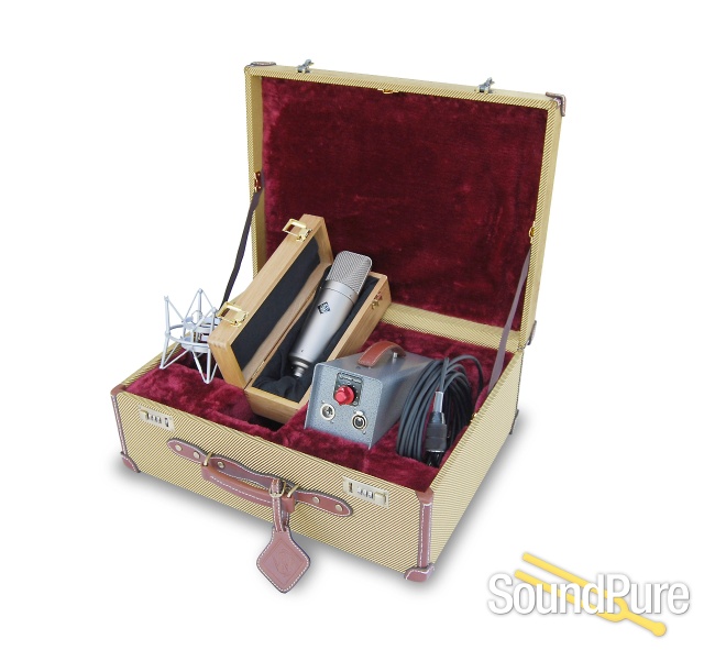 CM67 S, K67 capsule, vintage Telefunken EF86 tube or vintage special select Phillips tube, Plush Oak Microphone Box, Wunder Audio Power Supply, shock mount, Tuchel microphone cable, Tweed Carrying Case.