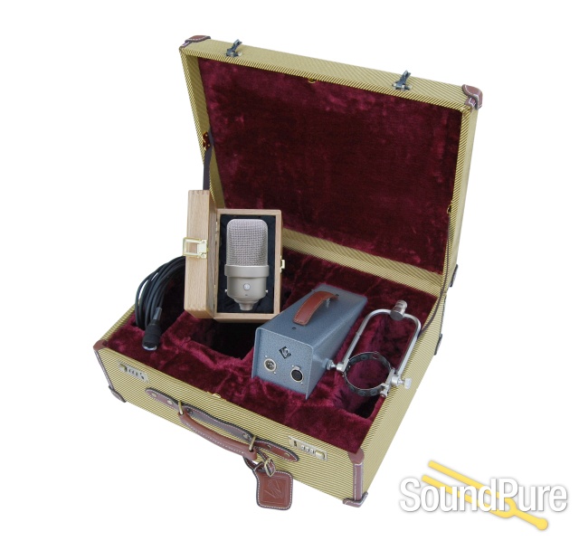 Your Wunder Audio CM50 S is nestled in velvet and softly secured in place in a foam-lined quarter sawn oak box that is clasped and hinged. This box then is safely incased in a precision velvet-lined thick foam tweed case that also holds your PSU, your one-piece newly designed yoke mount, and your cables. The tweed carrying case is a work of art in itself; it uses the same Fender tweed found in a vintage fender guitar case which amplifies the vintage period of the vintage-style CM50 S microphone, and it is trimmed with top grain leather and fine stitching. The CM50 S case has a strong leather handle and combination lock to keep your mic secure. This case can be sold separately.