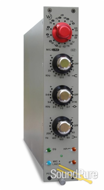 We Live, sleep, dream and breath audio and the engineering that refines detail to an obsessive edge. The PEQ1 series was born when we began to ask, "If price and market were no object, what is the absolute best mic-pre/equalizer we're capable of producing?" What we came up with is probable overkill for 98 percent of the engineers in the world, but if you are part of the small demanding group of people that are as passionate and curious about pursuing the ridiculous best as we are, have we got the gear for you. The Wunder Audio PEQ1 and it's History "From the very beginning we looked at the transformers. All of our transformers are still hand made and wound one at a time. We realized that "off the shelf" transformers will never do." The project started when we were joining together and refurbishing two Neve 80 Series consoles. In 1999 we aquired 24 modules that were custom made for a console for John Paul Jones of Led Zeppelin. This was a one-of-a-kind console, and these modules were only ever made for this one desk. We noticed the Zeppelin modules sounded far better than anything we have ever heard. The amplifier circuits were very similar to the 1073s, so the sound had to be attributed to the transformers. We had the idea of making new modules that fit into our 80 Series frame based on those very same transformers. The key to the incredible sound of the PEQ1 are the huge Mu-Metal transformers. They are the exact ones that the old Zeppelin desk had used and are 80% nickel! We did a little detective work and contacted the maker of the original transformers who still had the old plans available and the original winding machine. They did have to re-tool to make the pressed metal transformer can used in the original module. These transformers are physically larger than the ones in a 1073 and just fit in the PEQ1 module housing with .5mm clearance! "The Incredible Sound" The PEQ1 is only similar to a 1073 in that it is a Class A discrete fully transformer floating circuit with an inductor based "British style" equalizer. Compared to a 1073, the PEQ1 has more equalizing power with better lows and more presence in the mids and highs for a sound that lifts the veil off your input signal. The reason for this is simple: the PEQ1 has eight Class-A gain stages where the 1073 has four. The extra gain yields more Class-A headroom resulting in a wider pure path audio. The PEQ1, however, is NOT a 1073 close. It has its own unique circuit, and over the last four years we have made about 20 modifications in the prototype. The only way to explain the sound is that is it like a 1073 with a deeper low end "that goes all the way to China" and more depth overall in the mids and highs without that phasey boxy sound. The 3db roll-off points are 8.7Hz on the low and 118KHz on the top end. The EQ is the best we have ever heard, reminiscent of a powerful Pultec, but with more frequencies. The drum sounds you can dial up are invincible, and nothing can make the vocals stand out in a mix like the PEQ1. There are twice as many amplifier stages in the PEQ1, which provides 60db line in gain compared with the 1073s 30db! This gives you more sonic headroom. The 60db of line in gain also allows for a wide range of instrument/line levels. You can plug a bass guitar, guitar or keyboards directly into the Line Input for a huge, better than any direct box sound. One can also use the Line input as a totally separate microphone input utilizing the large Line transformer. With 42 dB of gain, the Line input stage works great as a 2nd Mic Pre! "Solid in Solid out" All the Gain and EQ switches used on the PEQ1 series are custom made by Elma, which were designed for us at their factory in Switzerland. The custom made (long shaft) potentiometers are Vishay audio-grade, made with conductive plastic for a long life (one million cycles). You can't beat this switch/pot combination. The EQ and Phase switches for the PEQ1 are by Isostat, giving a vintage touch. The PEQ1R uses C&K toggle switches. We have been using huge Sprague "Orange Drop" capacitors for years and seems the obvious choice for the equalizer circuit. We have recapped so many consoles and tape machines in the past and found the Panasonic FC 105?C electrolytic capacitors to be our favorite so that's what we are incorporating. Vintage-style, rare polystyrene foil capacitors are used throughout. High-current Metal can, not plastic, BC107B and BC109C transistors imported from the UK are used throughout the amplifier stages. These metal transistors are better than their plastic counterparts when used in an Audio circuit. A single circuit board offers a vast sonic improvement over 5 separate boards found in a 1073 eliminating the use of multiple edge-board connectors and redundant wiring. The hook-up wire is also imported from the UK and is hand assembled to "Military Spec". The enclosures are CAD designed to 1/1000" tolerance and are bright-nickel plated with PEM nut hardware throughout for solid construction. Finally, we CNC mill the custom-designed anodized aluminum knob-set which gives the module character. The boost and cut knobs are solid brass with shiny nickel plating. The knob markers are white plastic dowels embedded in the knob so the white mark will never wear off. We also provide an optional "Vintage Look" faceplate in RAF grey. Additionally one person, our best master craftsman, builds every single PEQ1 series, from PCB to testing. A PEQ1 series Mic-pre/EQ is one of the best pieces of gear made anywhere in the world, in any given year. For those who want to listen and can't make it to our showroom in Austin, we really encourage that you A/B test our PEQ1 with any other Mic-pre/EQ. Finally, If you want the absolute best Wunder Audio has to offer, if you want to use the best sounding mic-pre/equalizer in the world, if you get as flat-out hyped up about chasing perfection and embracing the ultimate in excellence like we do, you have to consider the PEQ1.