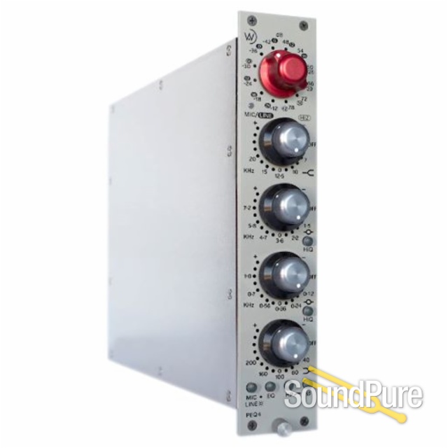 Introducing the new PEQ4. Our 4-band Mic-Pre/EQ, with selectable narrow or wide Q, allows you to enhance (boost) and/or minimize (cut) a larger number of selected frequencies. Designed in 2019 for Roger Waters' 48-channel Wunderbar, the PEQ4 has 4 bands: low, low-mid, high-mid, and high. Refined boost and cut amplifiers give better resolution to the boost and cut compared to the PEQ2. New custom-made aluminum gun-metal gray knobs give the module a cool vibe. This new module also boasts silent switching push-buttons. The push-buttons activate a relay so no audio passes through them, making them functionally quiet. The new PEQ4 includes our custom transformers, which give it that thick Wunder Audio sound. The PEQ4 is available as a module in the Wunderbar, a vertical rack mount module, or 19" one-U-high horizontal rack mount unit. While it doesn't replace the PEQ2, the PEQ4 maintains what we love about the PEQ2, while including some extras designed for those who desire a bit more control over the EQ.