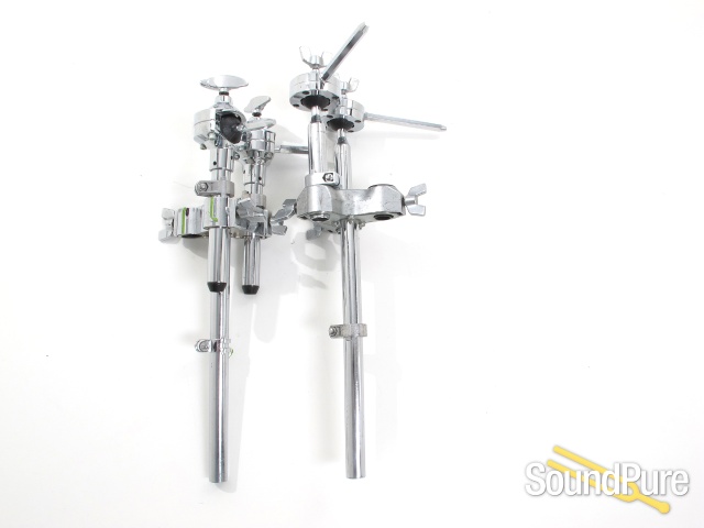 The finish has some bumps and bruises with some light touch ups done to a couple of spots on bass drum hoops and a spot on the 10" tom. The bass drum has a couple of light surface scratch spots on the top where the previous owner used to lay spare sticks. See photos. Given their age, they are in great condition for a player's set. Included with the set are tom holders but no stands. One set is the long arm version and the second is the shorter version.