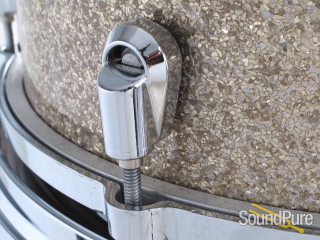 The chrome is in excellent shape and shows no signs of pitting. All of the drums were recently re-headed but do have some stick marks. The 13" tom is virtually untouched. The toms feature aluminum die-cast hoops and YESS mounts which are designed to increase sustain while giving more reliable tuning. There are die-cast claw hooks on the bass drum with protective rubber gaskets to prevent marring the hoops.